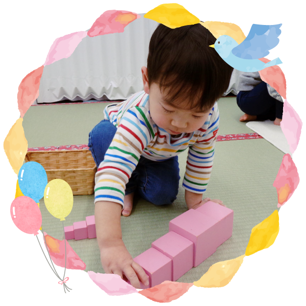 | 10:00 | モンテッソーリ活動(日常生活) お散歩、戸外遊び、造形遊び、音楽遊び、表現遊び |